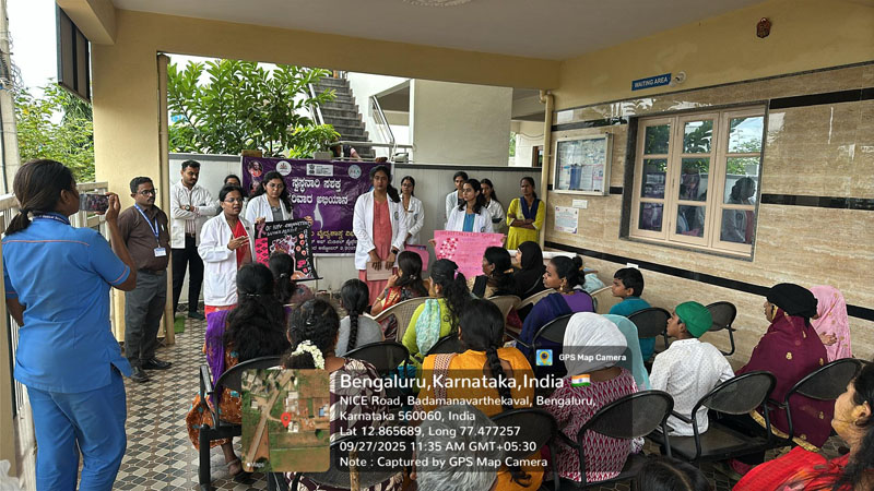 | 27.09.2025 | Saturday | Department of Community Medicine | UHTC – Shivakumar Swamiji Nagar | Health camp, Screening for Diabetes, Hypertension, Anemia; AL enabled screening for Breast ca, Screening for Cervical cancer using pap smear. IEC Activity -Animal bite/Rabies, Breast cancer, Cervical cancer. |