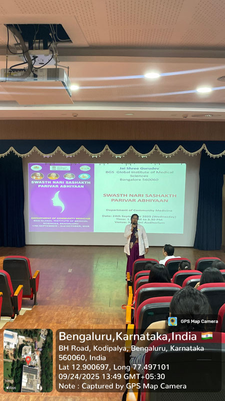 On the same note, the Abhiyaan was operationalized at BGS GIMS and routed through the Department of Community Medicine, BGSGIMS as directed by the Ministry of Health and Family Welfare and National Medical Council. In view of this, various health camps and programmes were scheduled from 17/09/2025 to 02/10/25 focusing on Women and children including the adolescents.
