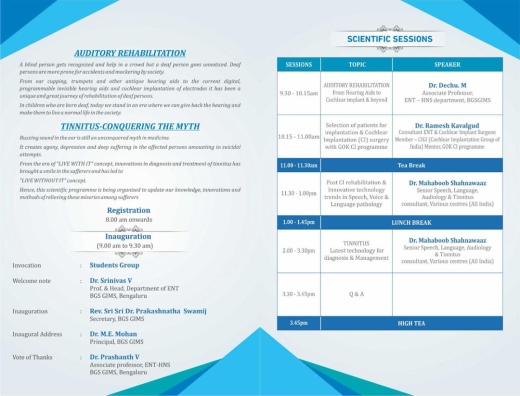 CME ON “REHABILITAITON OF HEARING LOSS (HEARING AID TO COCHLEAR IMPLANT) & TINNITUS- CONQUERING THE MYTH” ON 16/04/2024 By Department of ENT-HNS, BGS GIMS.
