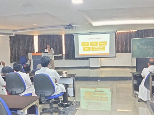 Dr. Lavanya M informed hospital staff about the Level II PSG service available in the department at an affordable price.