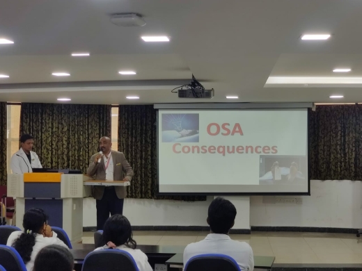 Dr. Srinivas V delivered a comprehensive talk on causes and consequences of obstructive sleep apnea (OSA) and emphasized the need for early diagnosis and treatment.