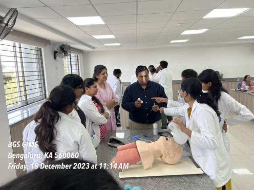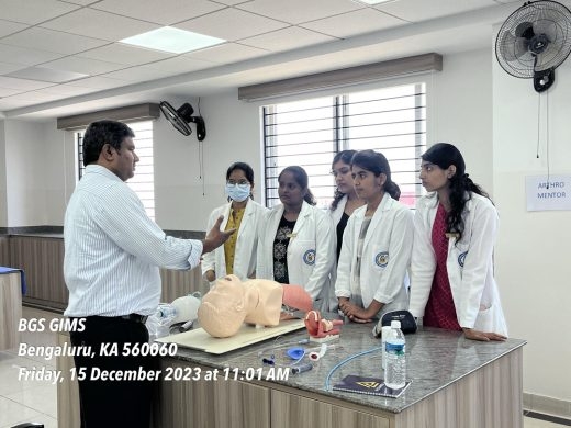 Hands on training workshop on basic life support was conducted to interns batch 2018-19 from 13th December to 15th December 2023 in Advance skill lab, BGS Global institute of Medical science as per NMC requirement.