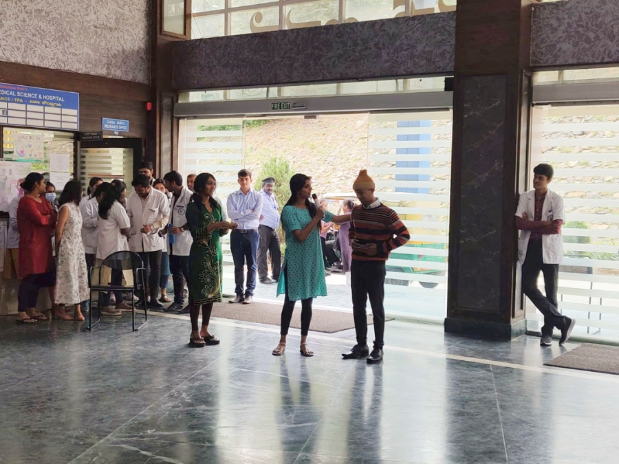 The venue for the World ORS day celebration, the Reception area of our esteemed Hospital, was decorated with hand drawn informative posters made by students, interns and post graduates, of our institute, as means of spreading awareness about ORS.The Heads of various departments, faculties, post graduates, interns, undergraduates and nursing staff gathered along with huge crowd of common people.