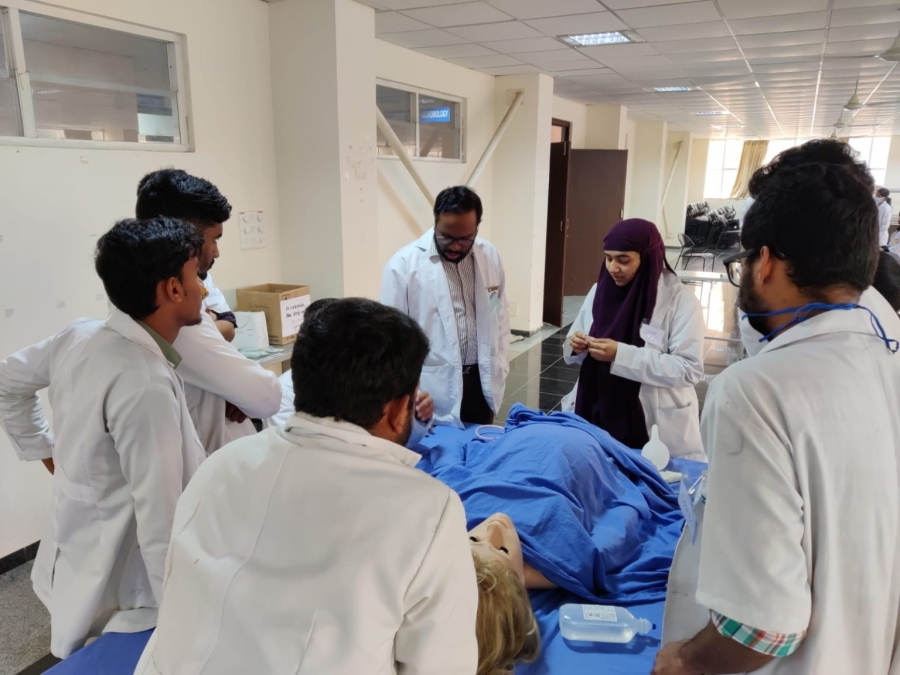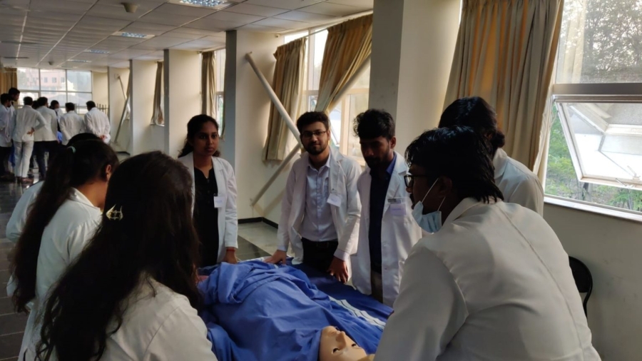 c-ECLS program for the 5th batch of interns was conducted from 24th March 2022 to 25th March 2022. The program started with a pretest followed by self introduction of participants where they expressed about their expectation from the program. Airway management was the prime topic for the first day. The second day session commenced with a debriefing note followed by cardiac resuscitation, Obstetric and Pediatric resuscitation. Trauma care was the topic for third day and fourth day commenced with both theory and practical exam and the program concluded with the certificate distribution ceremony by our respected Dean and Principal Dr. M. E. Mohan sir and a thank you note by the organizing secretary.