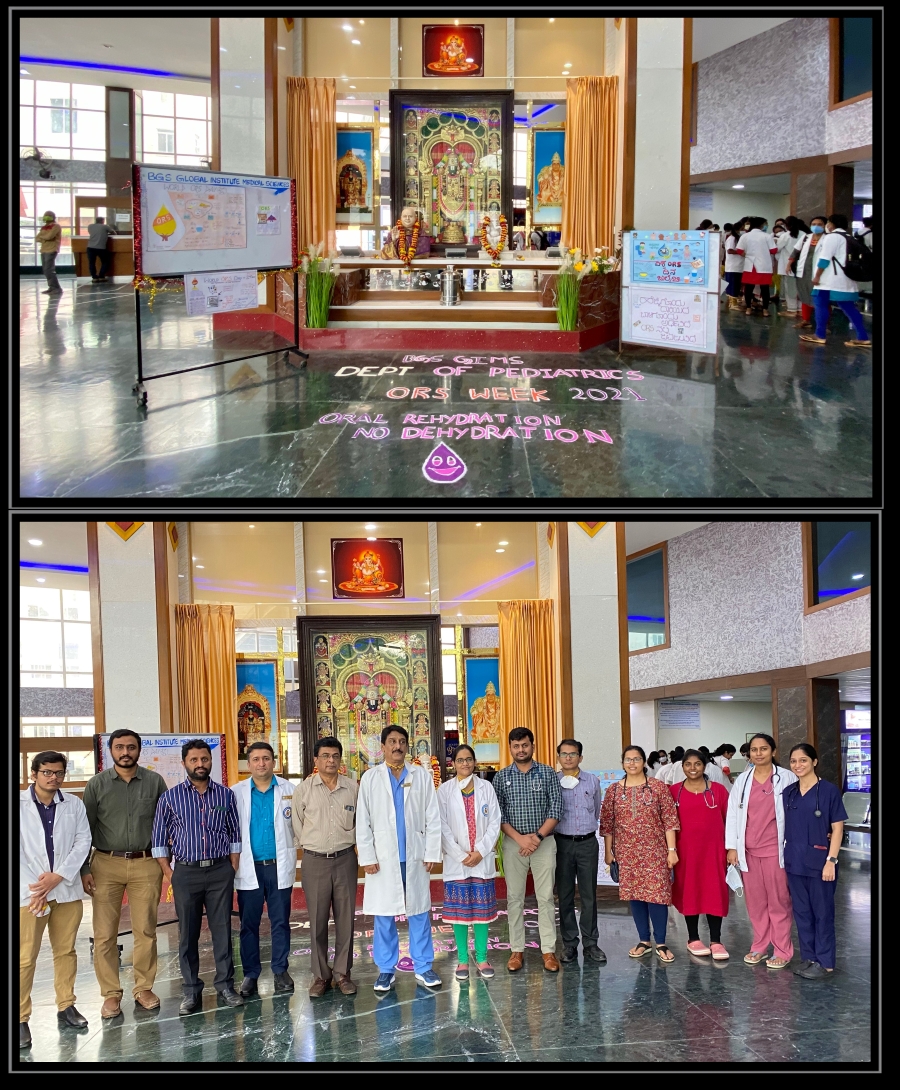 A bright sunny morning heralded celebrations on the last day in the month July at the very front door of our esteemed institution. The event marked the culmination of ORS Week, an annual occurrence observed during the last week of July. This yearly ritual was conducted with much fanfare and enthusiasm by the Department of Pediatrics under the aegis of the Indian Academy of Pediatrics with this year’s theme of Oral Rehydration, No More Dehydration.