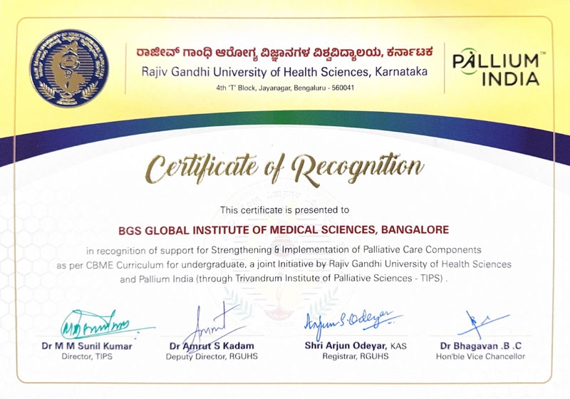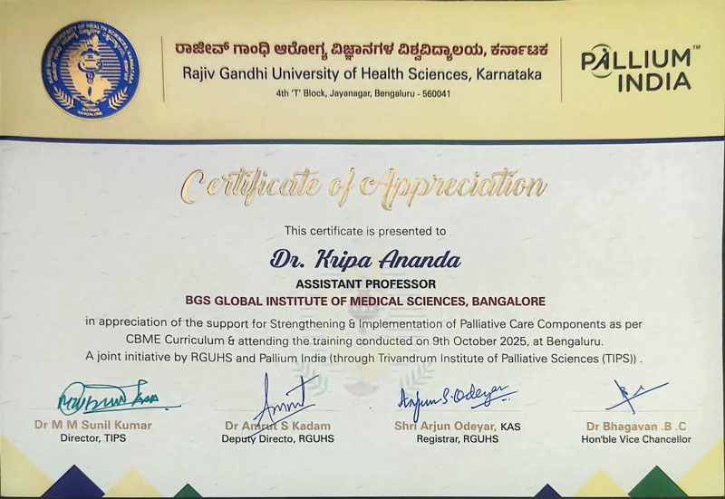 Recognition by RGUHS for Strengthening and Implementing Palliative Care Components under the CBME Curriculum