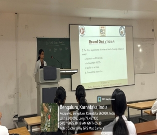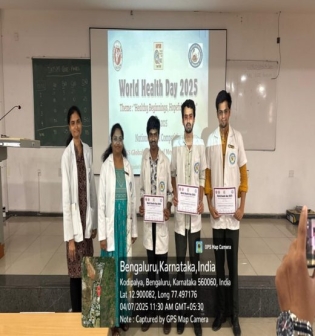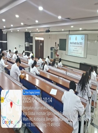 On the occasion of World Health Day 2025, Department of Community Medicine conducted Quiz competition for undergraduate students at BGS GIMS under the aegis of IAPSM, Indian Association of Preventive and Social Medicine. The theme for world health day 2025 is “Healthy Beginnings, Hopeful Futures”. The event was conducted with the Support of the Management BGS GIMS, Dr.M E Mohan, Dean Cum Principal, Dr. Nirmala C J , Incharge Hod Dept. of Community Medicine. Dr. Zeen Lasvy Oliveira, Senior Resident, Dept of Community Medicine was the Nodal Faculty for the event with active involvement of Post graduate students Dr. Sakala Monika, Dr. Rahul Arekal, Dr. Rahul Sapparada, Dr. Fiona Louis and Dr. Sibi Chakravarthy. The Elimination round was conducted on 02/04/2025 from 10am to 11am in the Dept. of Community Medicine. Twelve teams with 36 students from 3rd year and final year participated and 4 top scoring teams were selected for final round. Final round of quiz was conducted on 07/04/2025 from 10am till 12 pm in lecture hall, Dept. of Community Medicine. The event was inaugurated by faculty, Dept. of Community Medicine. Dr. Zeen Lasvy Oliveira acted as the quiz master, PGs and MSW assisted the quiz. Around 50 undergraduate students and 20 faculty attended the programme. There was very good participation from the participants and also from the audience for audience questions. There were four rounds- MCQ round, Visual round, one word answer round and Rapid-fire round along with tie breaker round. Winners of the quiz were Mr. Aditya Aravind, Mr. Darshan K S, Mr. Amrit Mishra from 3rd year. Winners were congratulated, awarded with certificate and programme was concluded with vote of thanks
