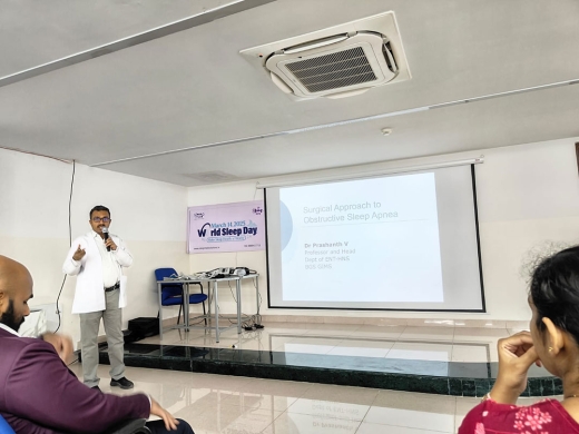 Dr. Prashanth V, Professor & HOD,Department of ENT gave a lecture on “Surgical treatment for obstructive sleep apnea”.