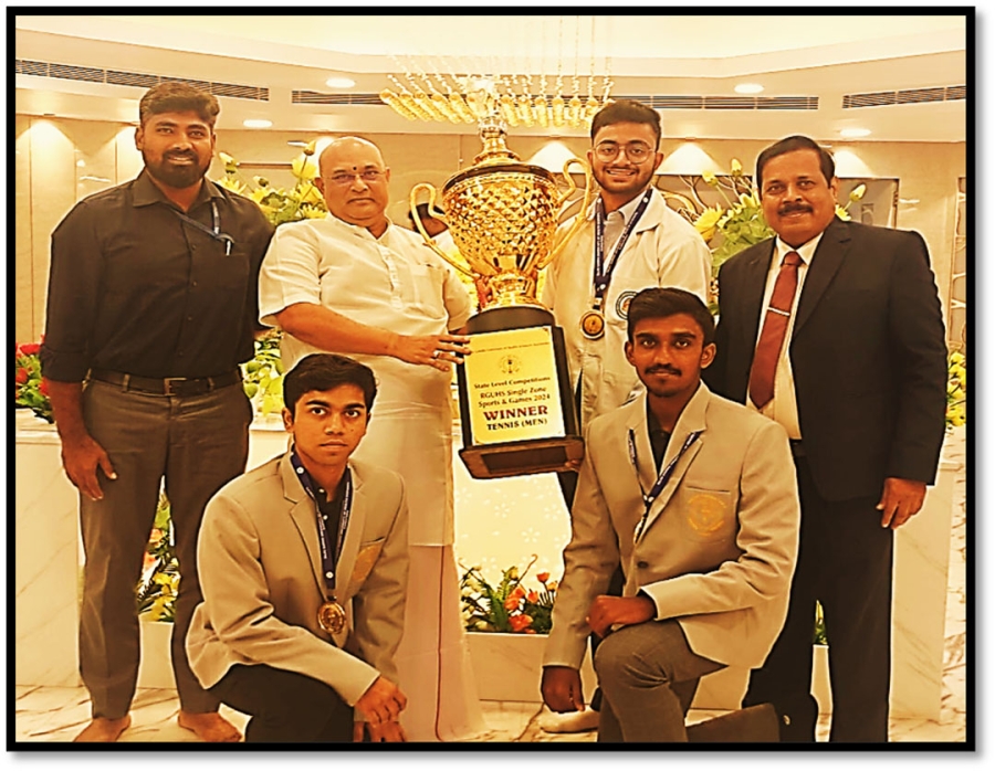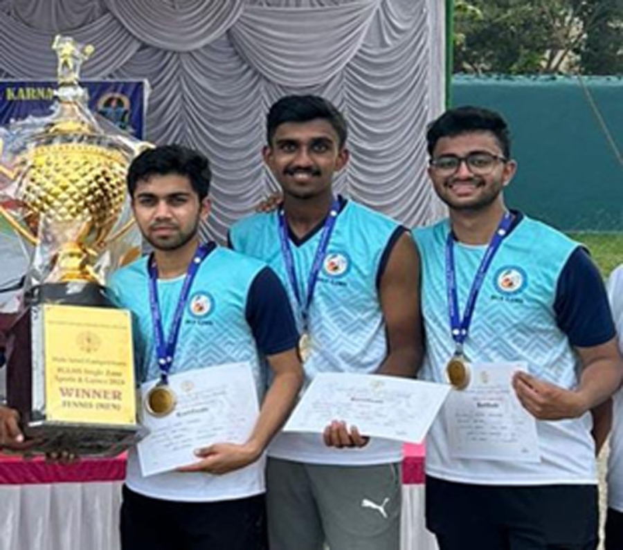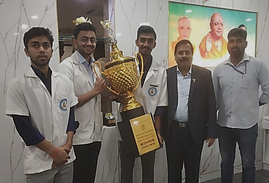 Jai Sri Gurudev, Revered Sri Sri Dr. Prakashnath Swamiji, Blessed and Congratulated the Dean, Physical Education Director and Boys Tennis Team Members Mr. Srivatsa Chandrashekar, 4th year, Mr. Bhuvan Prakash 2nd year and Mr. Aryan Kumbhaj, First year MBBS for securing FIRST PLACE in State Level – Single Zone Tournament 2024-25 Organized by RGUHS held at Mandya Institute off Medical Sciences, Mandya, Karnataka. We wish all the best for their future endeavours