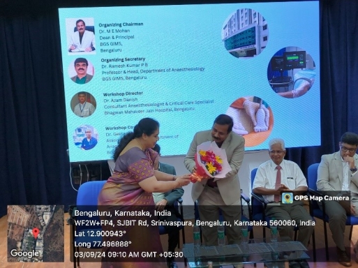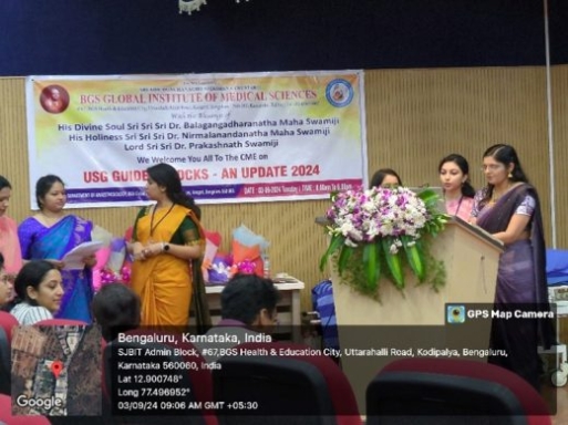 | Brief report about the Program | Under the able guidance and motivation of the Dr. M E Mohan, Dean, BGSGIMS. The Department of Anaesthsiology, BGSGIMS successfully completed the CME – USG Guided Blocks – An Update 2024 The CME was headed by the Workshop Director Dr Azam Danish, Consultant Anaesthesiologist, Bhagawan Mahaveer Jain Hospital, Bangalore. An attempt to enlighten the delegates on all the Peripheral Nerve Blocks was made through this venture. An inauguration ceremony was held at mini auditorium and all the faculties were felicitated. Post inauguration, CME was commenced with the basics of ultrasound practices and techniques by Dr Azam Danish. He quoted some of his experiences which helped the delegates to overcome the challenges with confidence during the day-to-day clinical practices. A mass live demonstration was held by the distinguished faculties, Dr Azam Danish, Dr. T A Patil, Dr Nader Abbas Malvia, Dr Sudhakar Koppad, Dr Yoganarasimha N, Dr Lokesh, Dr Anil Kumar, Dr Smriti Jha, Dr Qudsia Munawari and Dr Renuka on different peripheral nerve blocks. The session included comprehensive discussion on the anatomy and indications of various nerve blocks, and also to observe the nuances of each block. An appetizing lunch was organized for all the delegates which was followed by the hands-on workshop. This was held at BGS Skills Lab on volunteers and was divided into 8 stations. The delegates had an opportunity to practice on the volunteers under expert guidance. The workshop encouraged questions and interactive discussions, which created an open environment for learning. It fostered confidence in performing nerve blocks safely and effectively. |