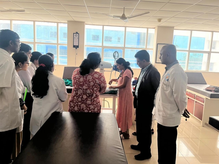 In BLS, essential component of high quality CPR consisting of effective chest compressions and positive pressure ventilation with AMBU was simulated on mannequins. Recognition of cardiac arrest, arrhythmias, operation of manual defibrillator was demonstrated for the students followed by Hands-on session by the students on each station was carried out.