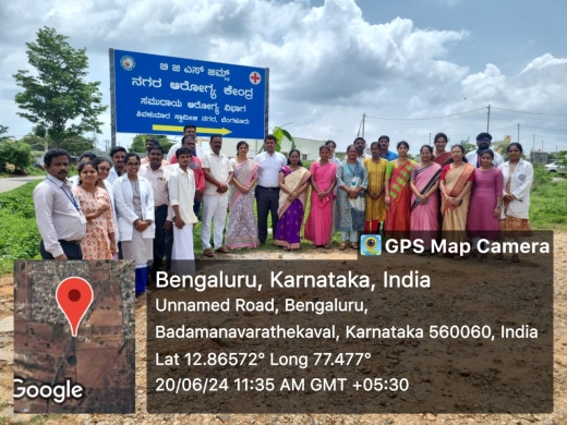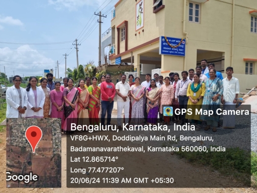 Urban Health Training Centre at Shivakumar Swamiji Nagar village near BM Kaval was inaugurated under the blessings of his holiness Sri Sri Nirmalanandanatha Mahaswamiji and Reverend Sri Prakashanatha Swamiji and with the support of Dr. M. E. Mohan, Dean and Principal, BGS GIMS on 20th June 2024.