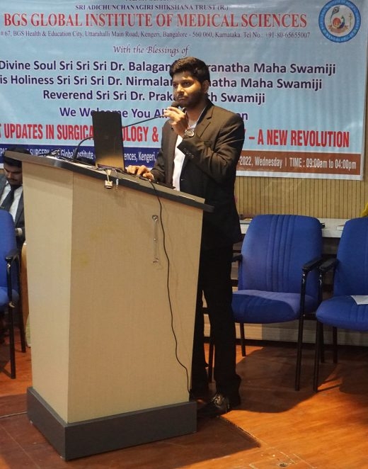 This was conceptualized by the idea to impart modern technique’s and updates in surgical oncology by Dr. Madan M Professor & Head of the Department and his Surgical Team suitably motivated by Dr. M. E Mohan – Dean cum Principal by his everlasting encouragement. The day began with session on different modalities in Oncology by our esteemed speaker Dr. Rajshekhar C Jaka , HOD & Consultant Robotic Surgeon Department of Surgical Oncology, S S Sparsh Hospital, Bangalore and continued by other guest like Dr. Bhaskar M V HOD, Consultant Interventional Radiologist, Department of Radiology,